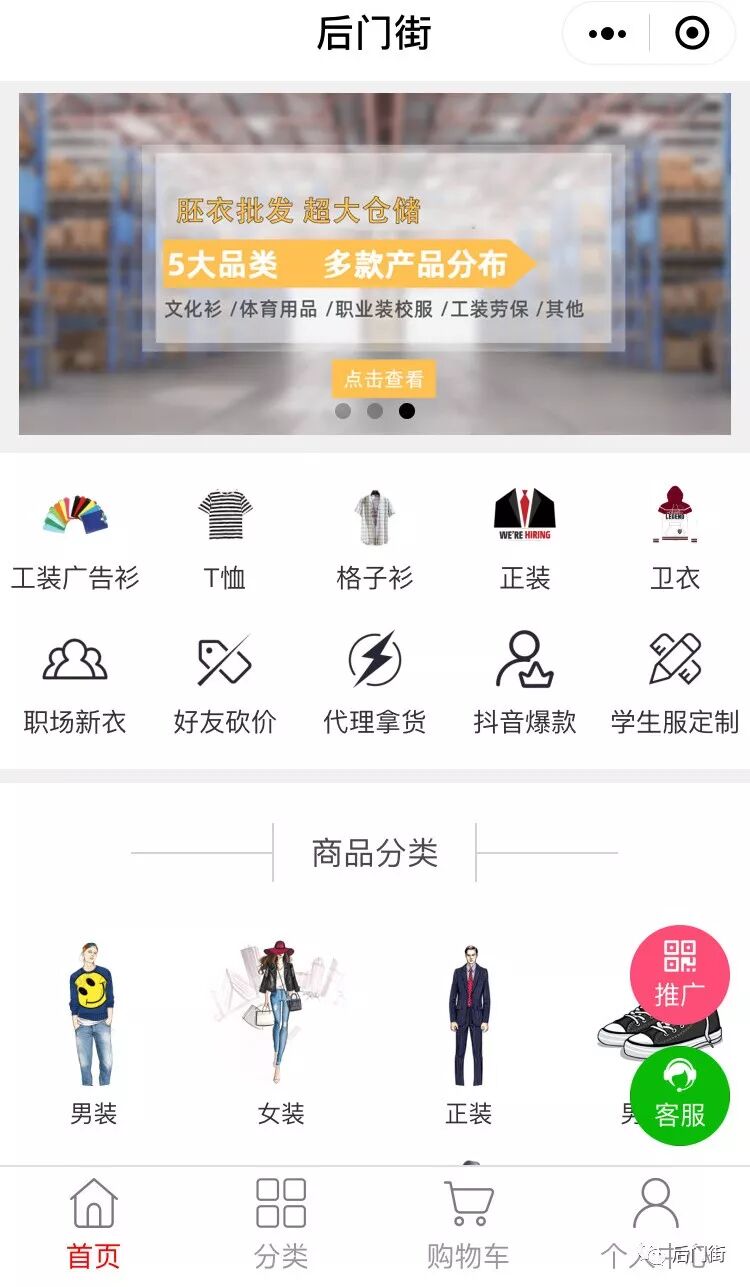 ①单纯赚差价,公司提供基础价格,自行加价销售。后门街小程序上面的价格是参考价格,代理和兼职们可以自行定价,主要针对产品是工装广告衫定制类和正装班服定制类。