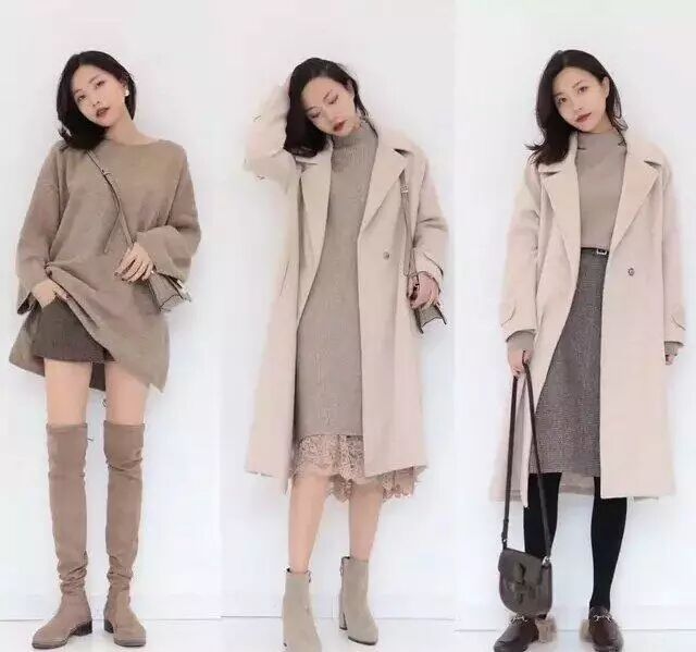 大衣是我们秋冬利用率最高的单品,保暖又不会显得臃肿。大衣的搭配,如果要穿出精致女人味,不妨在里面搭配一件针织连衣裙,尽量选择同色系或近色系,搭配起来会显得比较高级。