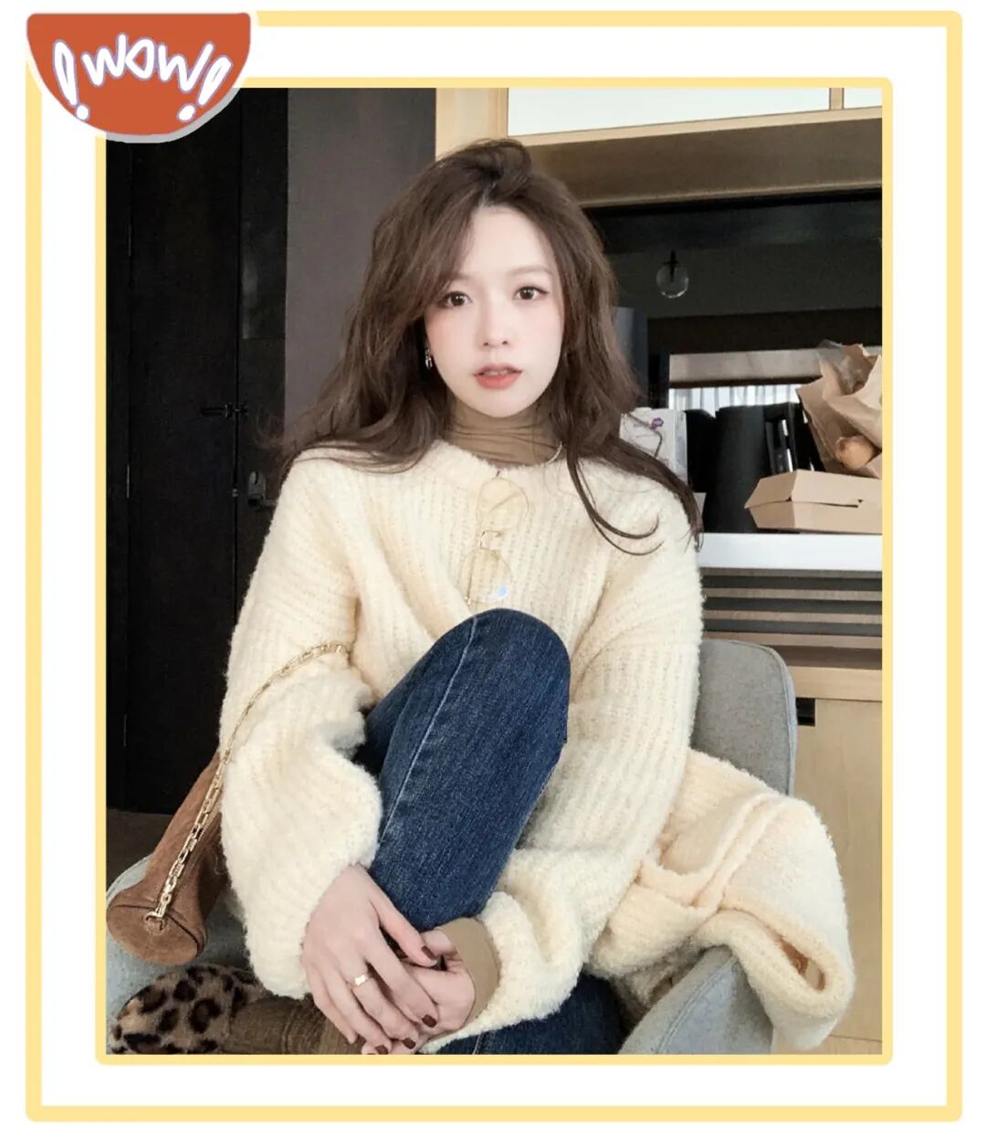 如果姐妹怕hold不住oversize的毛衣,