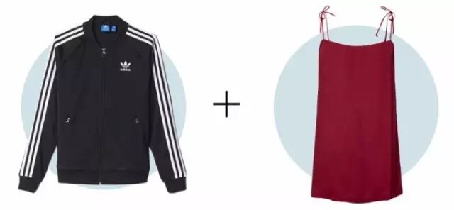 用时尚运动风来稍稍掩盖性感的裙装。