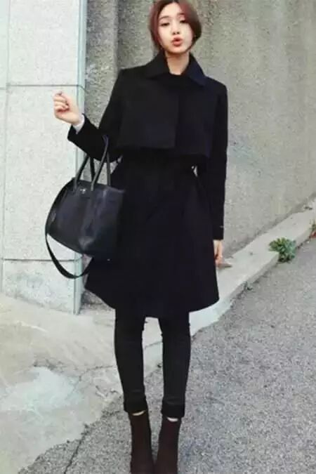 对于体型高大肥胖者,黑色更是一种最具收缩效果的颜色,在黑色的伪装下,看起来要比真实的体型苗条许多,不仅如此,黑色与其他颜色混合后仍然具有 收缩的效果,如红黑、蓝黑、墨绿等。穿黑色服装时,为了避免全身黑色,应以别种颜色的配件来缓和单调感。