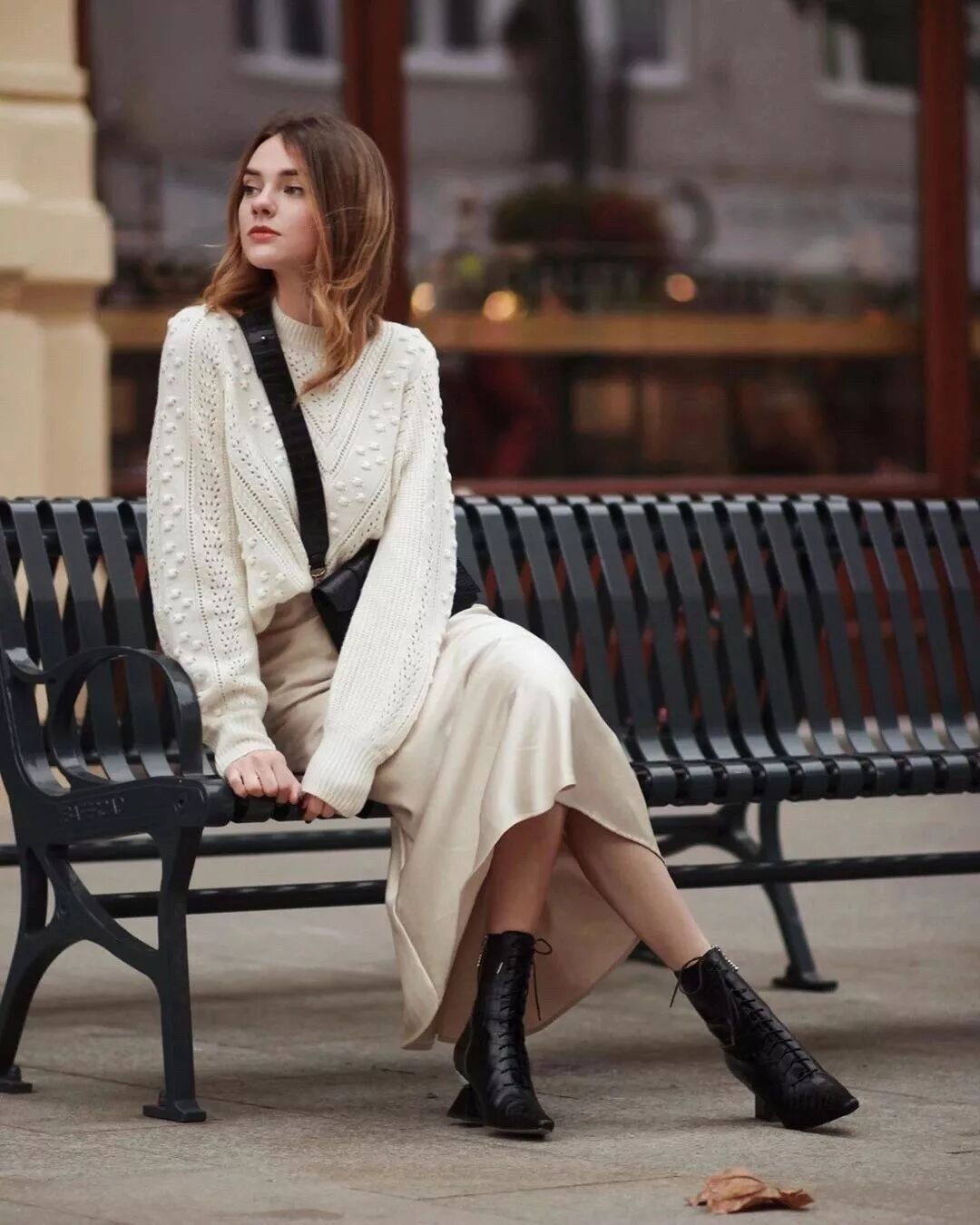 想来点不一样的小伙伴,可以像郑秀妍欧尼一样,把针织衫搭在肩后,更是时髦爆棚!