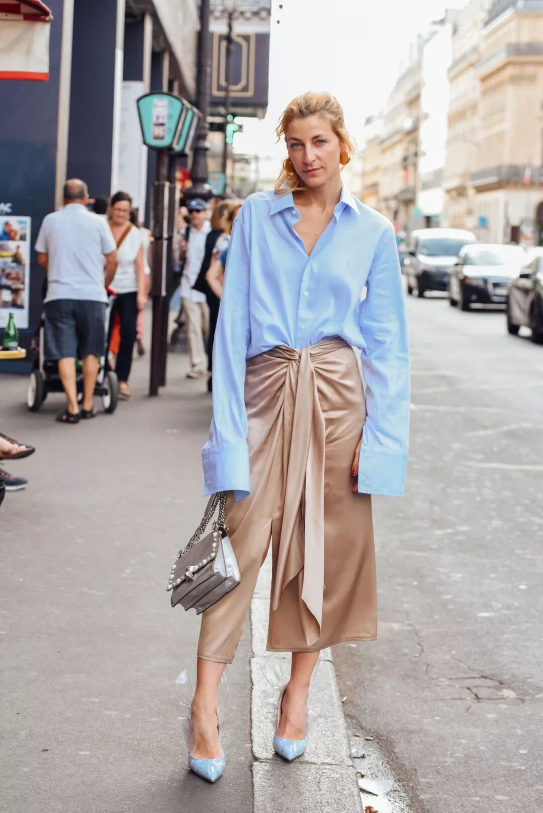 一条小丝巾系在脖子上,一秒get法式风的浪漫优雅。