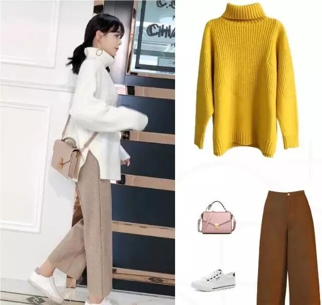 高领设计的毛衣,穿在身上很暖和,因为是含羊毛的材质,不会扎人,再搭配上侧开叉的设计,很显性感,能很好得贴合身体,搭配呢子裤,裤子是直筒的,很厚实,穿在身上很显舒适,鞋子的话,穿小白鞋吧,因为是高领的毛衣,叠穿不太好看,就这样的一身内搭,简单的穿在羽绒服里就是超好看的。