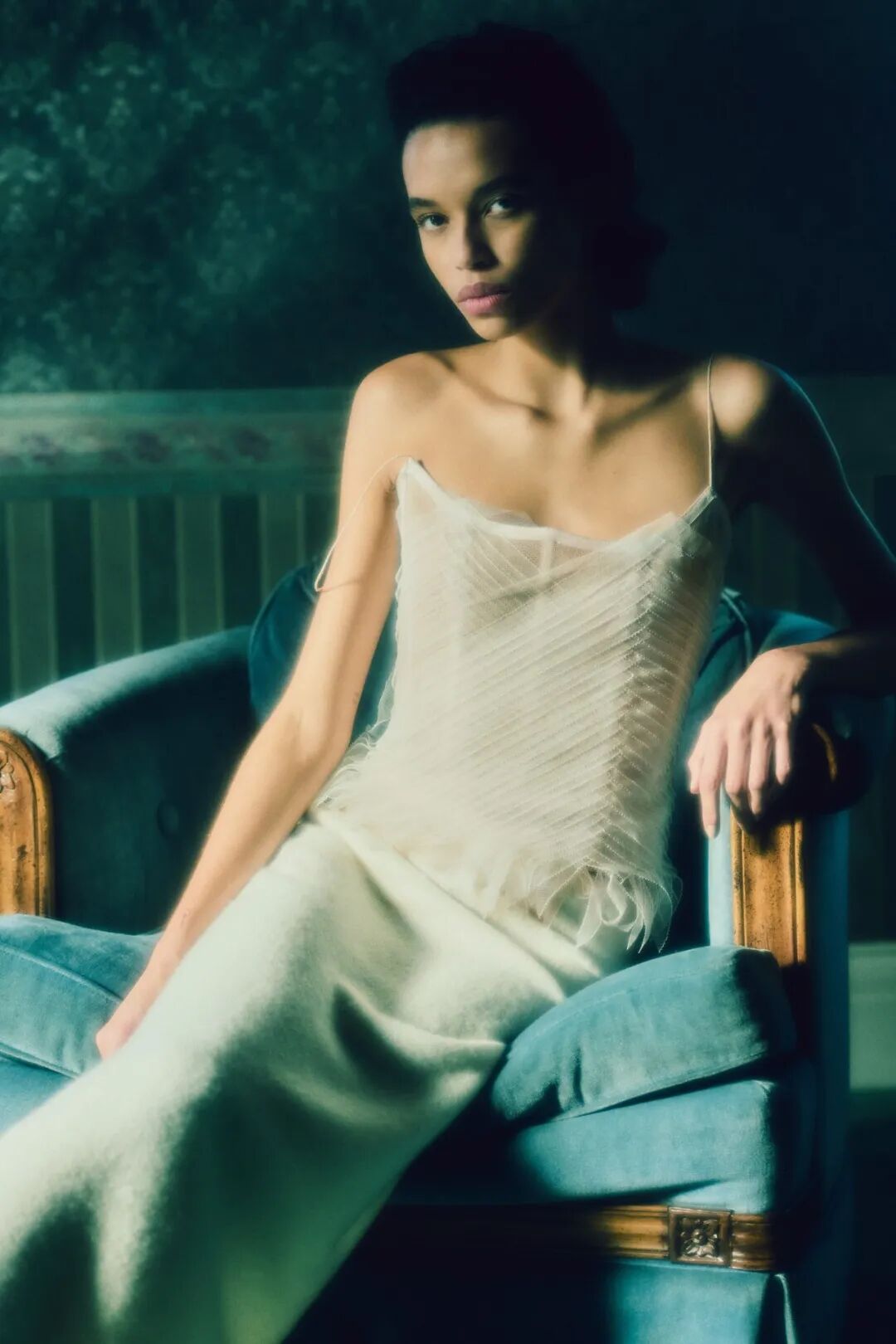 与手工剪裁的蕾丝装饰欧根纱裙相呼应