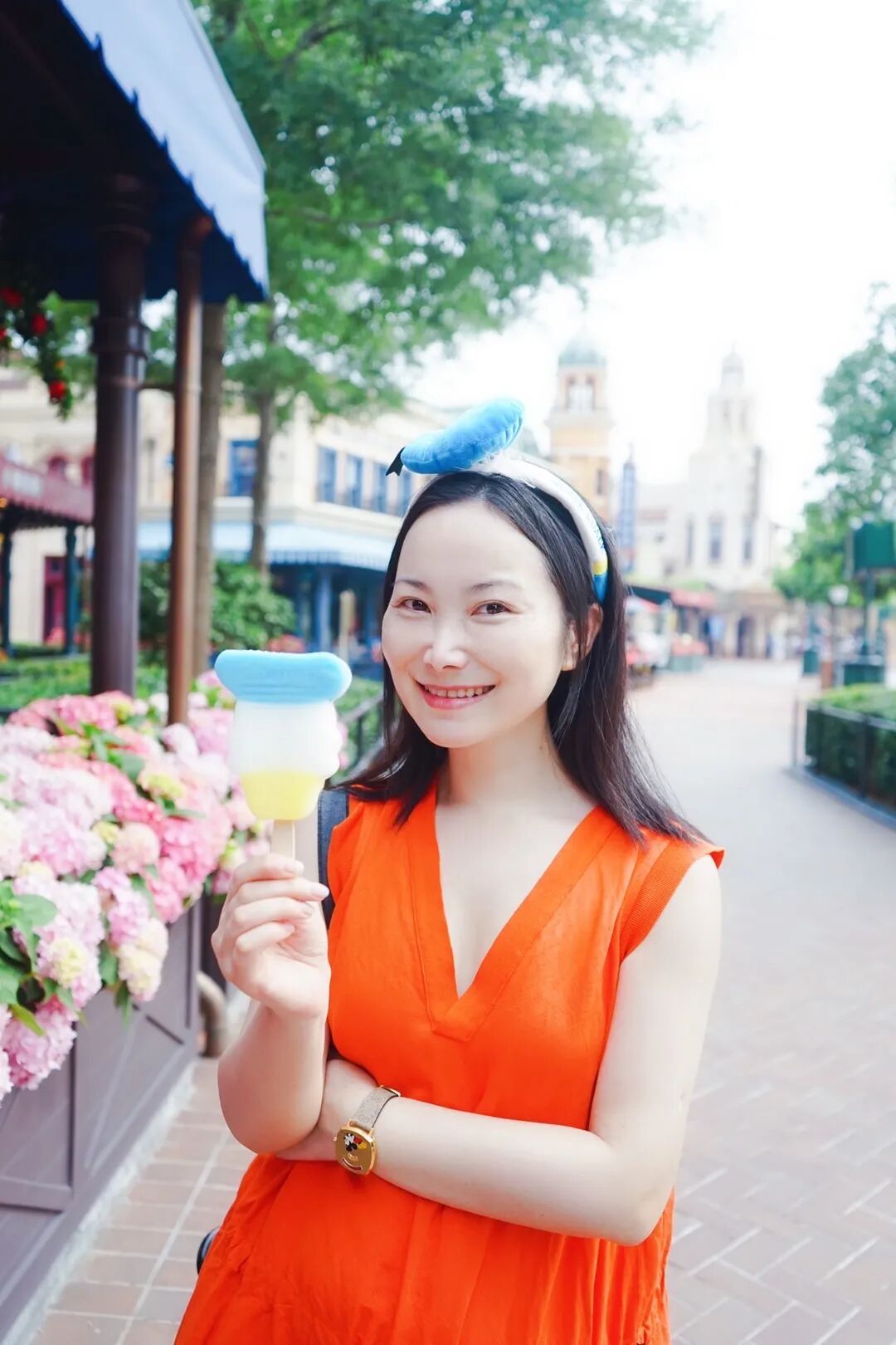这次我还特别佩戴了两款与迪士尼相关的两款腕表,分别在园区内与相关的迪士尼人物合影打卡: