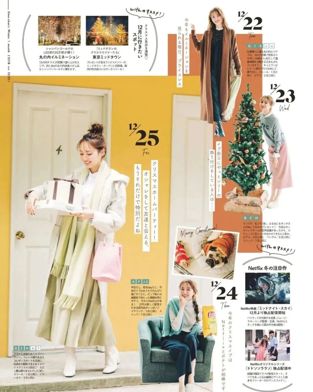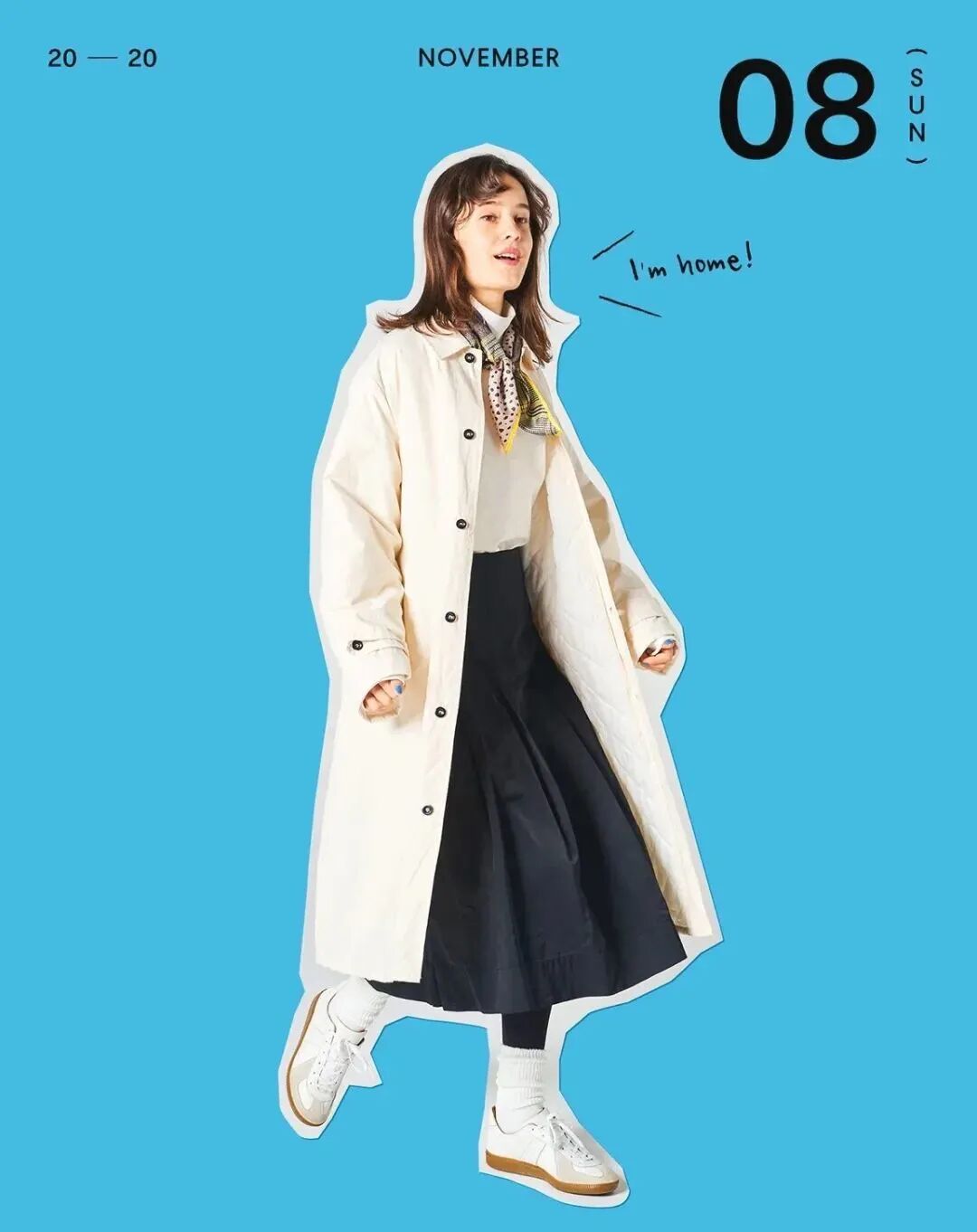 想让穿搭更日系,多试试搭配半身裙,直筒裙、纱裙都是日系女孩冬季 look 中常出现的单品。