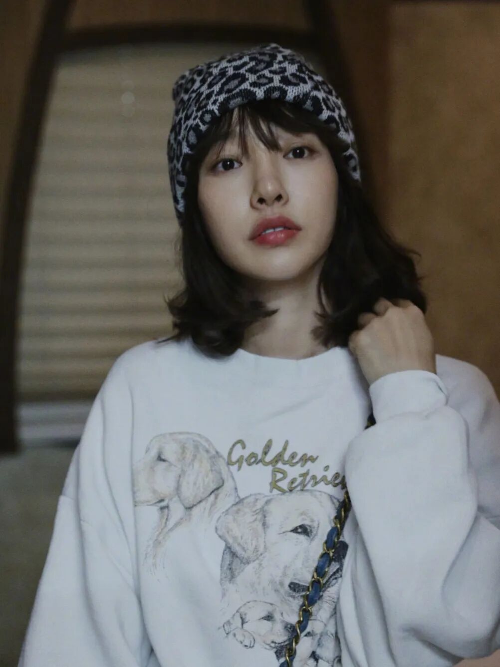 不敢穿整套的,就像白百何一样pick豹纹包包和帽子,这只出场率很高的豹纹帆布袋来自韩国布袋子品牌EMIS,人民币100多就能拥有。