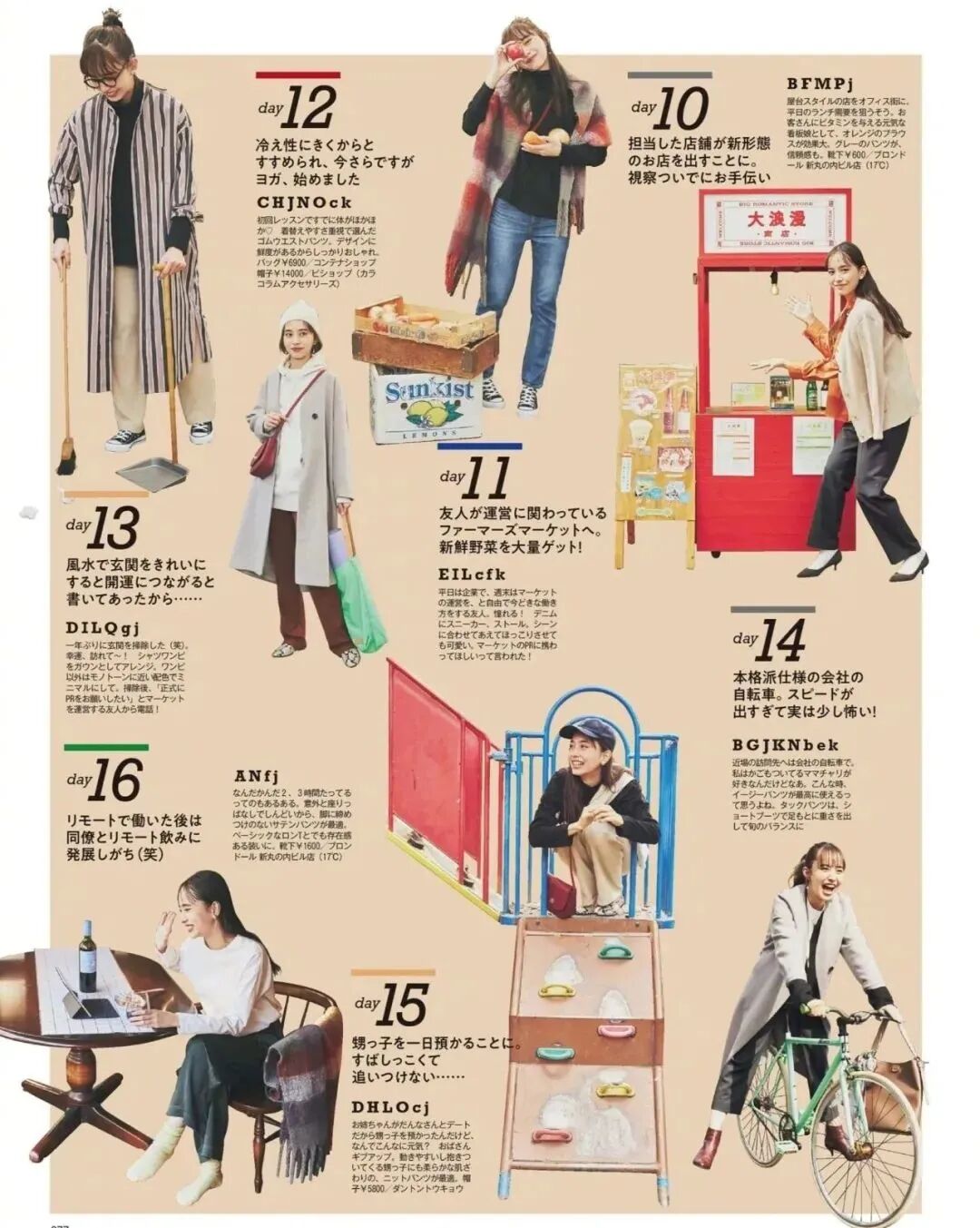 同一件单品的反复搭配,刚好也是日杂里常见的环节:30 天不重样穿搭。