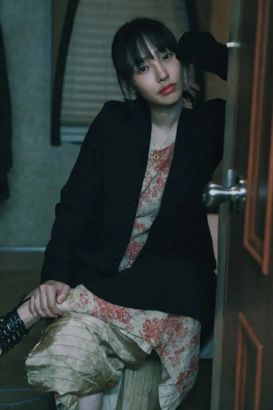 整套都是黑白色,涂个大红的口红更配。