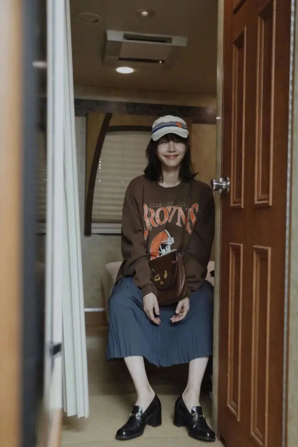 卫衣+直筒裙也是文艺女孩喜欢的搭配, Coach 棕色中古包和 Gucci 乐福鞋,增添了复古的感觉。