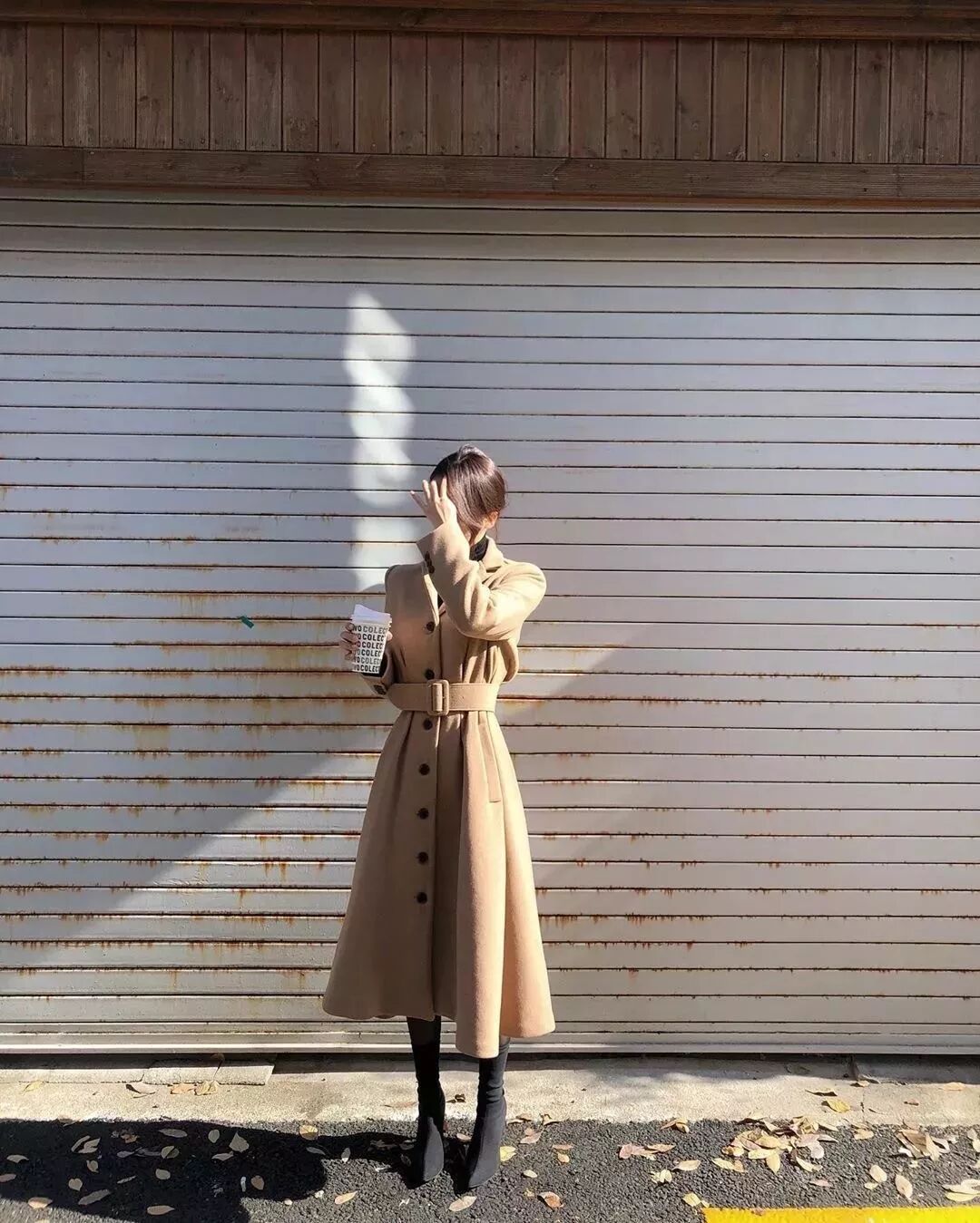 大衣款式的话,小编推荐系带收腰的,轻松帮你打造高腰线,优化比例,显高又显瘦。,没有繁复的元素,却能打造出初恋的感觉,非常淑女乖巧,惹人爱。