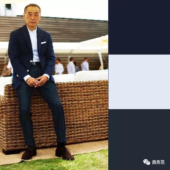 商务休闲是范主经常介绍的穿衣风,介于纯商务套装和休闲装之间。搭配好了能塑造职场得体精干形象,还不会显得过于呆板,对于很多身材不够完美、驾驭不好正装的亚洲人来说,最容易尝试。代表人物:老爷子@角田登
