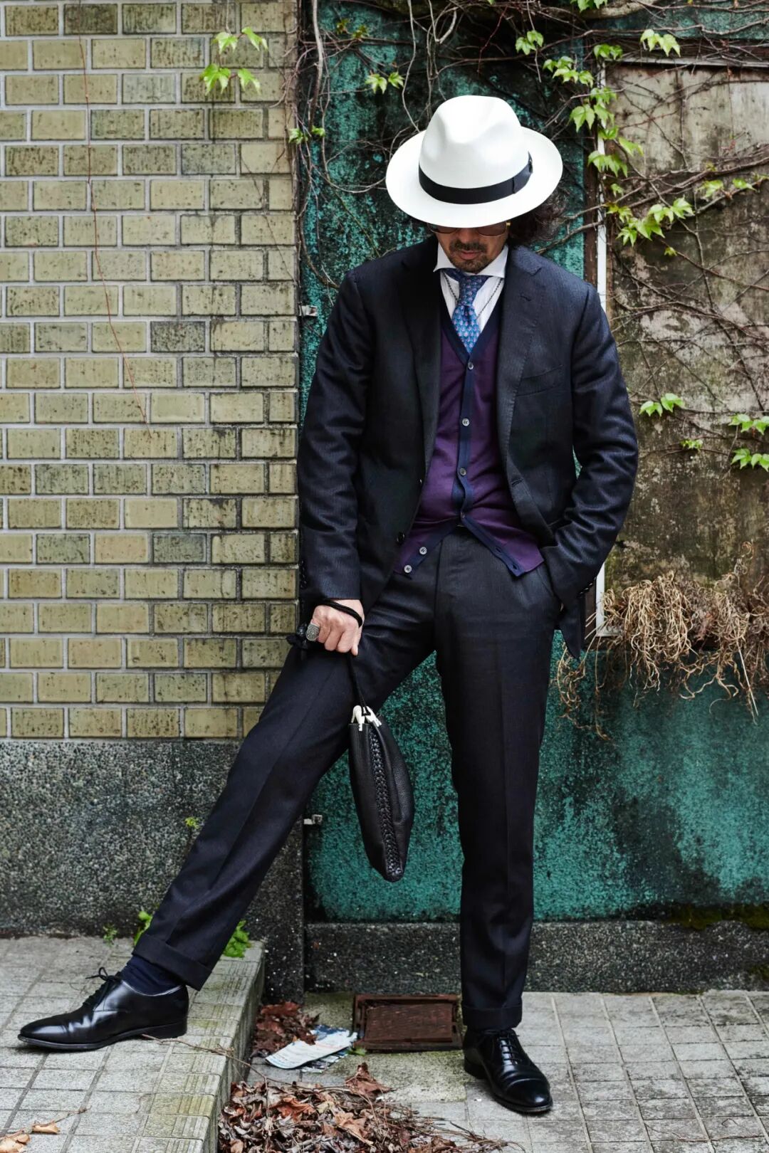 全身有一两处夸张的元素,比如说比一般领子较宽大或高,衬衫或领带花纹独特等,总之,你的全身不能平淡无奇。