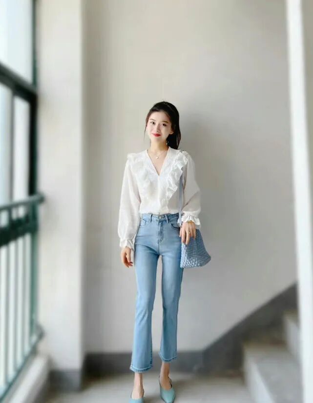 各式各样的上衣看得眼花缭乱,让许多人无法抉择,所以我们可以先固定好下衣,从而再去选择上衣。比如牛仔裤,一水的百搭时尚,不用担心过时问题。牛仔裤有两种搭配方案,优雅与减龄任你挑选