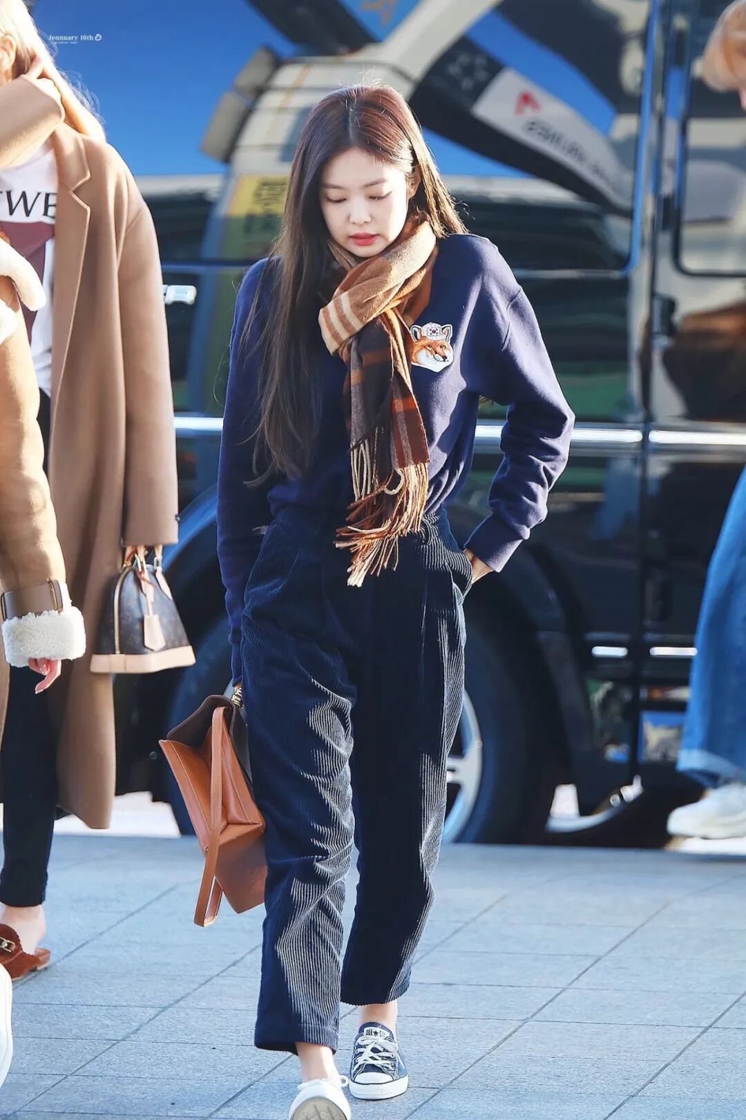 Sometimes you feel just too cold to put effort into your outfit. In that case, you can do it like Jennie and go monochrome. Try wearing only one color and match it in different shades. Looks cute and cosy right?