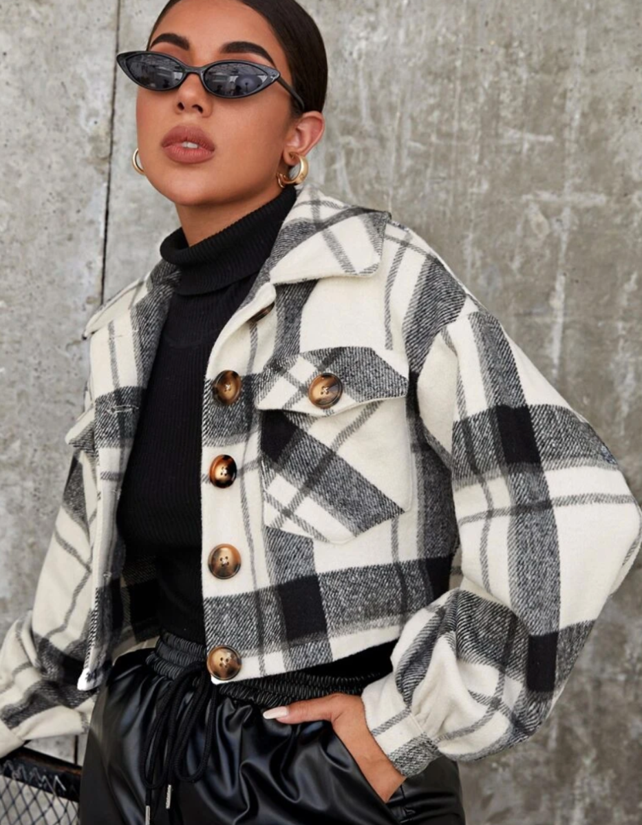 短款格纹羊毛夹克外套 short fleece plaid jacket