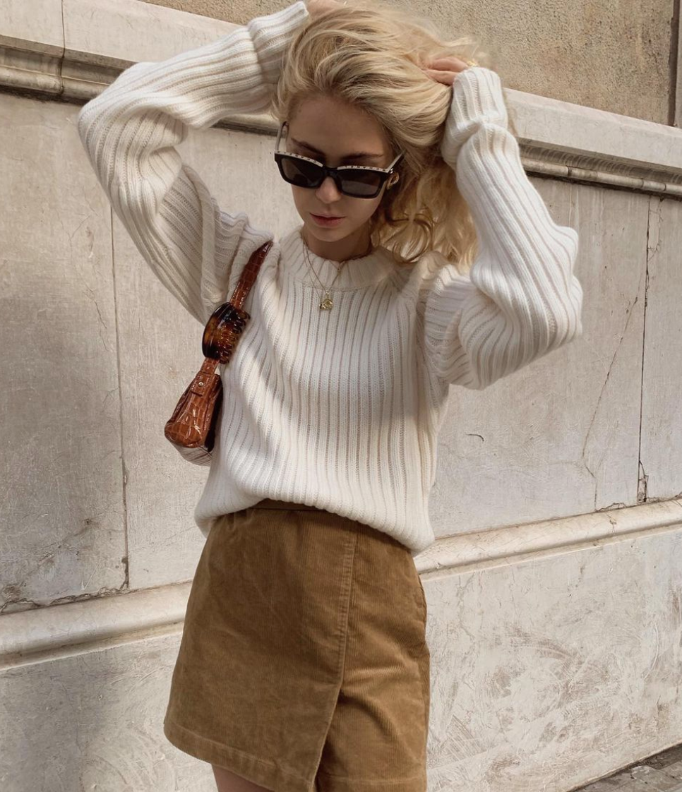 今年冬天另一件独特的关键服饰是Lisa的米黄色针织毛衣。这种毛衣穿起来会让集美们看起来更休闲。记住,把毛衣塞进裤子里会让你感觉温暖舒适哦。