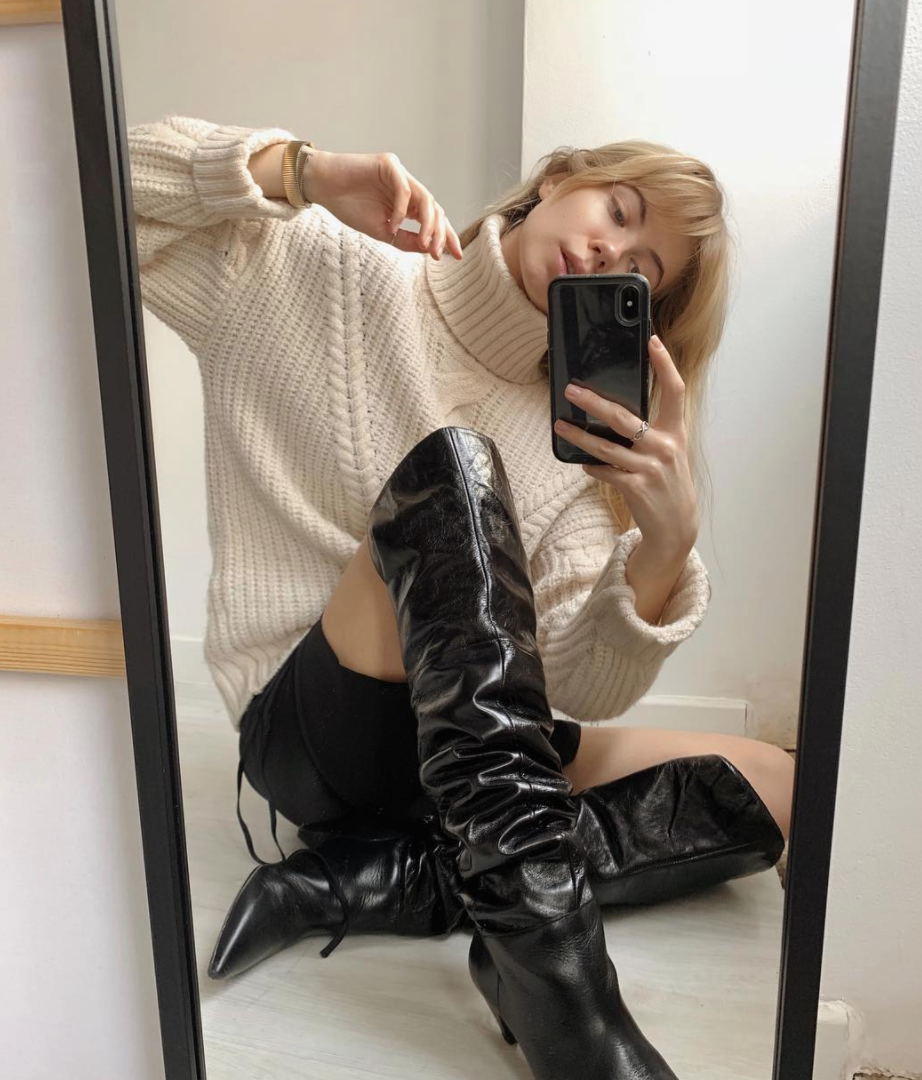 Another unique key piece to rock this winter is BLACKPINK Lisa’s beige knitted sweater. This sweater is perfect for a more casual look. Keep in mind to tuck your sweater into your pants to feel cosy.