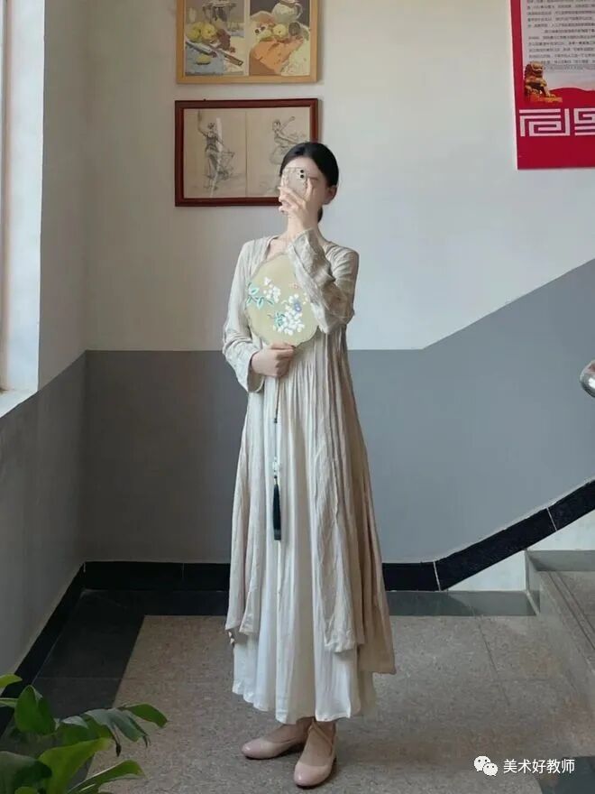 古风裙子传承中华文化都说美术老师在穿着上都很有个性,不仅敢穿而且穿的也很好看。古风穿搭也是一种经典的时尚,既可以传承中华文化又会很显个性。一条米白色的古风连衣裙上面没有多做太多花里胡哨的设计,而是以陈旧的颜色做主题,上面再增加一些褶皱来陪衬,就这样简单一条裙子就穿出了古风的韵味,手里还可以再拿一把圆形小扇子来点缀一下穿搭。