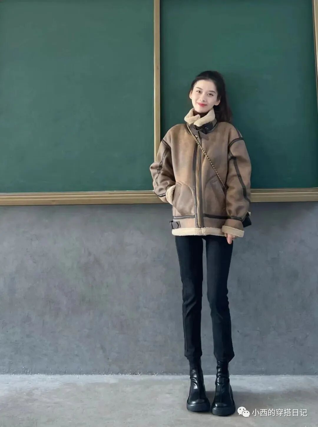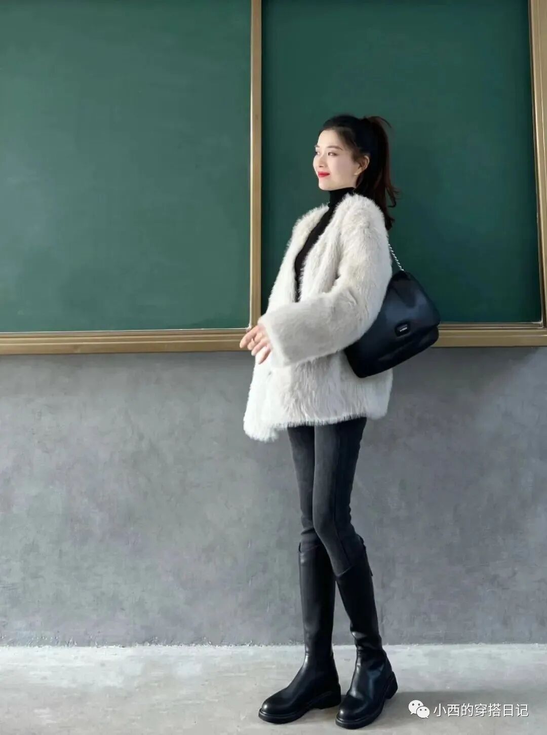 基础色系,永远都是那么的简约而不简单。全身黑色的搭配,虽然有些沉闷,但只要将内搭替换为白色的高领打底衫,整体造型便焕然一新,如同秋日里的一缕阳光,既精神又提亮,为整个人带来了不一样的生机与活力。▼