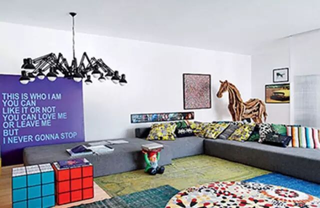 在软装设计中,波普艺术风格发展到空间的装饰和设计中,使用了大量的色泽鲜艳、造型感强的家具及软装饰品,而硬装则退居到第二位,重点是主人表达自己的前卫、时尚的个性。