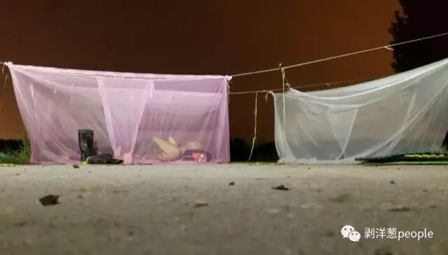 凌晨,在地头等待抓蛐蛐的撬子手睡在蚊帐里。