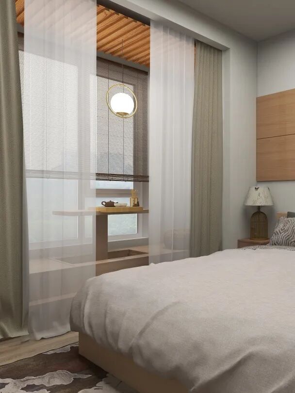 二是在窗帘的高度上要注意窗帘的安装方式。我们可以选择安装窗帘盒,并让窗帘从棚顶一直拖到地面。窗帘从天花板到地面的延伸视觉上会拉长房间的高度,给人以开阔和宽敞的感觉。