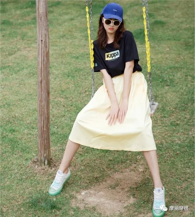 要与风景美得旗鼓相当,你得学会玩转色彩。黑色的冷酷感与淡黄色的稚嫩感相遇,相互牵制,甜美得刚刚好,又不失帅气。有的姐妹总是在色彩搭配上犯难,小编教你最简单的公式:浅色系+浅色系=清新感,深浅不一的同色调,能够增添造型层次感。