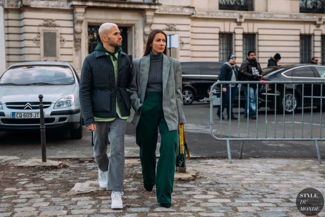 用不同的面料把同色系的衣服区别开来,这样穿最高级。此外,不同风格面料的组合也很能体现穿搭功力。