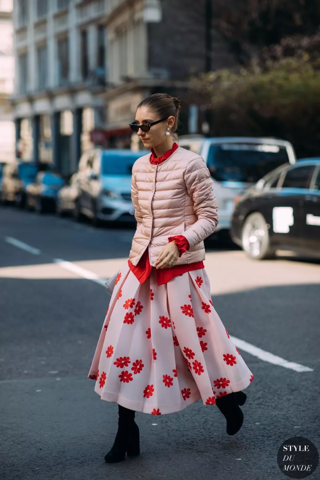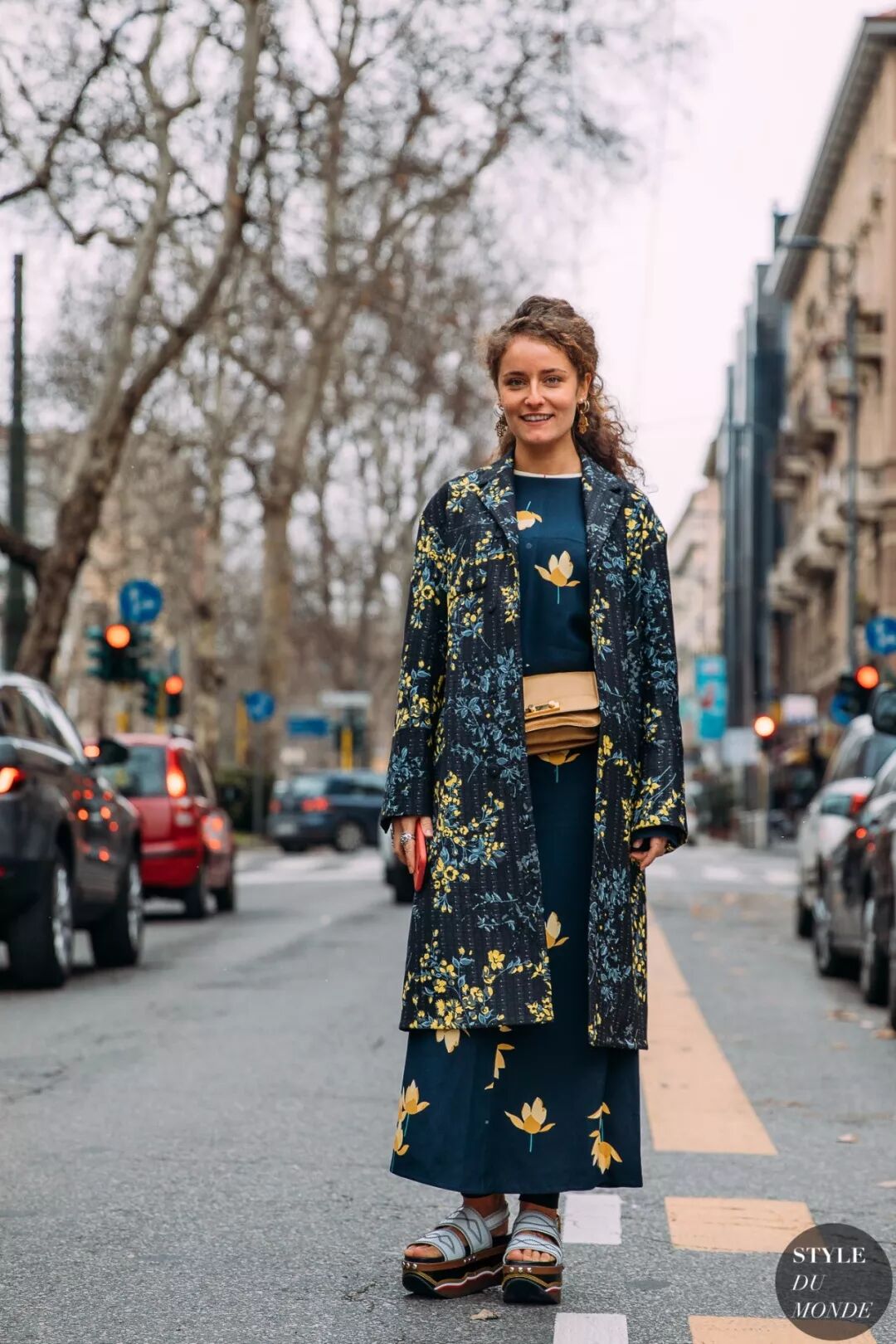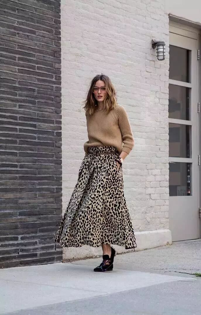 纯色毛衣也可以和同色印花半裙组CP,飘逸的裙摆增添冬日的浪漫风情,同色穿搭彰显高级的气质。