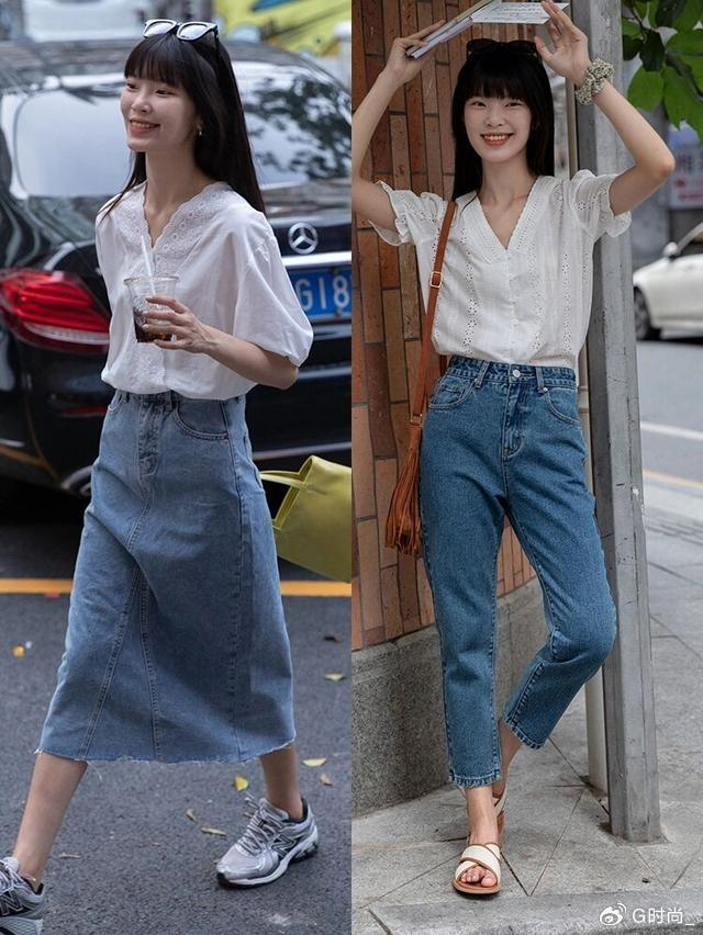 高腰的牛仔裤或者是半身裙配上短衬衫都是一些比较简洁的服饰,很容易hold住。如果觉得单调,那么你也可以通过搭配一些配饰,像这些博主搭配着墨镜也能够体现魅力,非常高级。