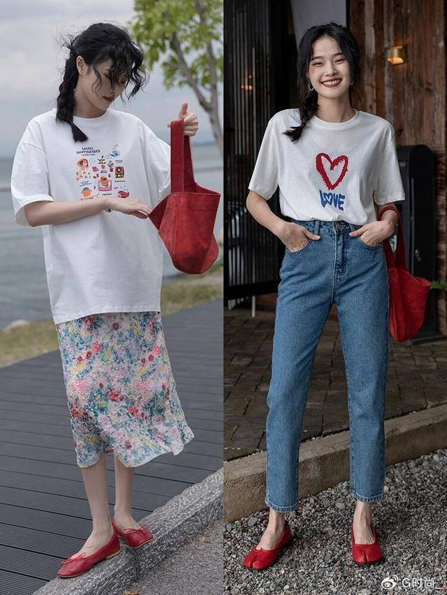 就像很多人平时会用这种修身的T恤配上高腰的阔腿长裤,这种宽松的裤子和修身的上衣有所对比,层次感就会很强,平时生活中也可以去参考。