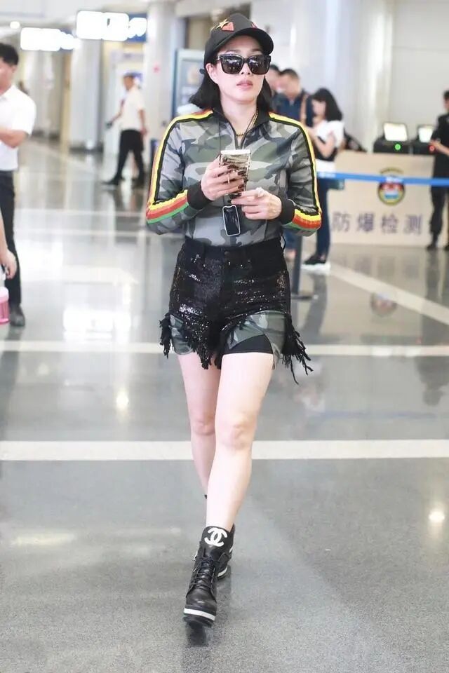 春季生机盎然怎么能少了印花元素呢。春季穿搭中如果加入了印花元素,既能让穿搭更有活力朝气,还能很好的丰富穿搭,轻松打造出彩吸睛效果,像钟丽缇在机场穿的这款迷彩修身上衣,不仅满足印花的吸睛,更是裙子外面套短裤,加上她这几年发福的身材,硬是将一件印花裙撑出了饱满体态,配上短裤腿粗的太真实了。