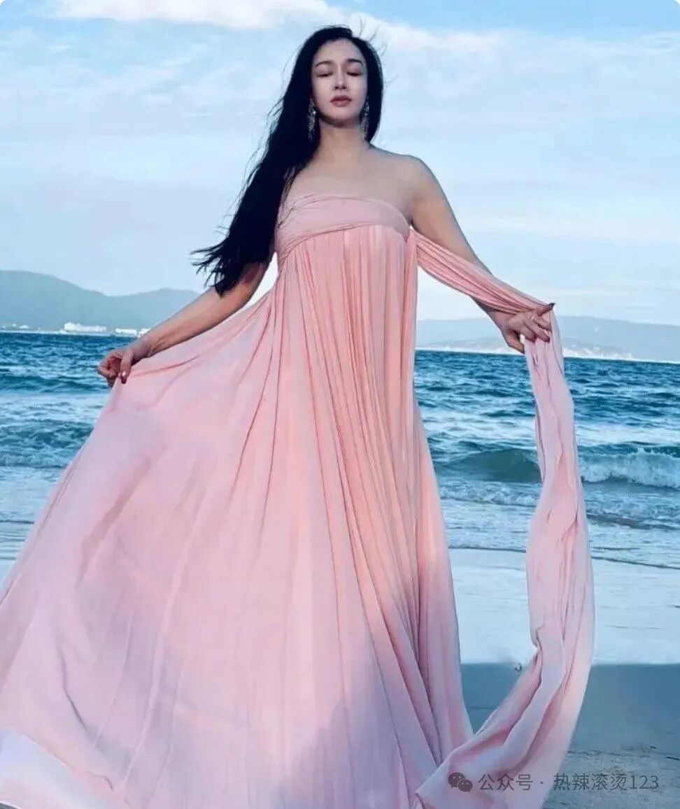 钟丽缇以一袭裸粉色抹胸度假裙亮相,裙身轻柔贴身,如同夏日微风中摇曳的浪漫诗篇。裸粉色不仅巧妙地衬托出她如雪般皎洁的肌肤,更添一抹温婉动人的气质。抹胸设计巧妙勾勒出上半身的曼妙曲线,即便是些许的肉感也显得分外迷人,整体造型既优雅又不失性感。这款裙子仿佛是为钟丽缇量身定制,不仅彰显了她成熟的韵味,更透露出她对美好生活的无限热爱与向往。