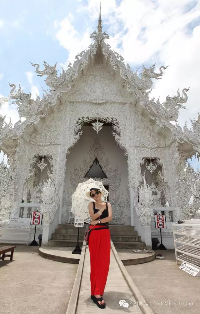 遇到单色色彩鲜艳的建筑,同色的服饰会让你的旅照大放异彩。