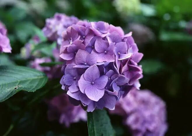 蓝色为主色的情况下增加紫色花,突出白色、粉色、深红色、鲜红色和紫色,这样色彩更浓,又能让人感到凉爽和清净,效果更好。