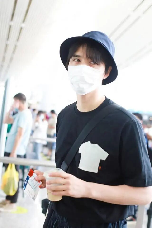 如果我们穿的是黑色衣服,也可以像阿云嘎这样在头上戴一顶黑色渔夫帽,有刘海的男生可以把刘海放出来,不仅能修饰脸型,还能让五官看起来更加帅气,同时也能营造出一种少年感。T恤配运动裤是很常见的搭法,但是这样的穿法再配一双拖鞋,就特别让人惊讶了,休闲随意的感觉弥漫了整套穿搭,气氛很是慵懒。