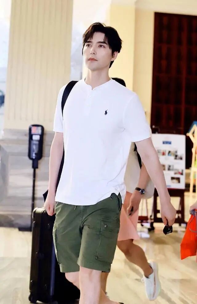 既然黑色吸热,那我们再来看一看白色T恤该怎么配。阿云嘎身上穿的这件白色T恤的版型是有些老成的,圆领和袖口的设计太过于紧致,对于肌肉发达或者是身上肉比较多的男生来说是非常不友好的。但是绿色的工装短裤很适合搭配白色T恤,穿在身上会非常帅气,男生们都可以尝试。
