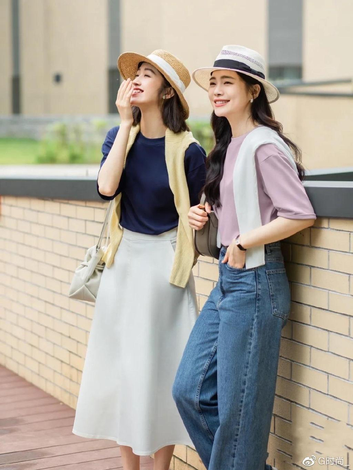 纯色T恤,是一种特别百搭又低调的单品。尤其是想要凸显气质的女性,更建议大家选择柔和又高级的色彩。显白的藏蓝色,温柔的茱萸粉,清爽的绿色,低调的黑白色,都是特别百搭又高级的色彩。