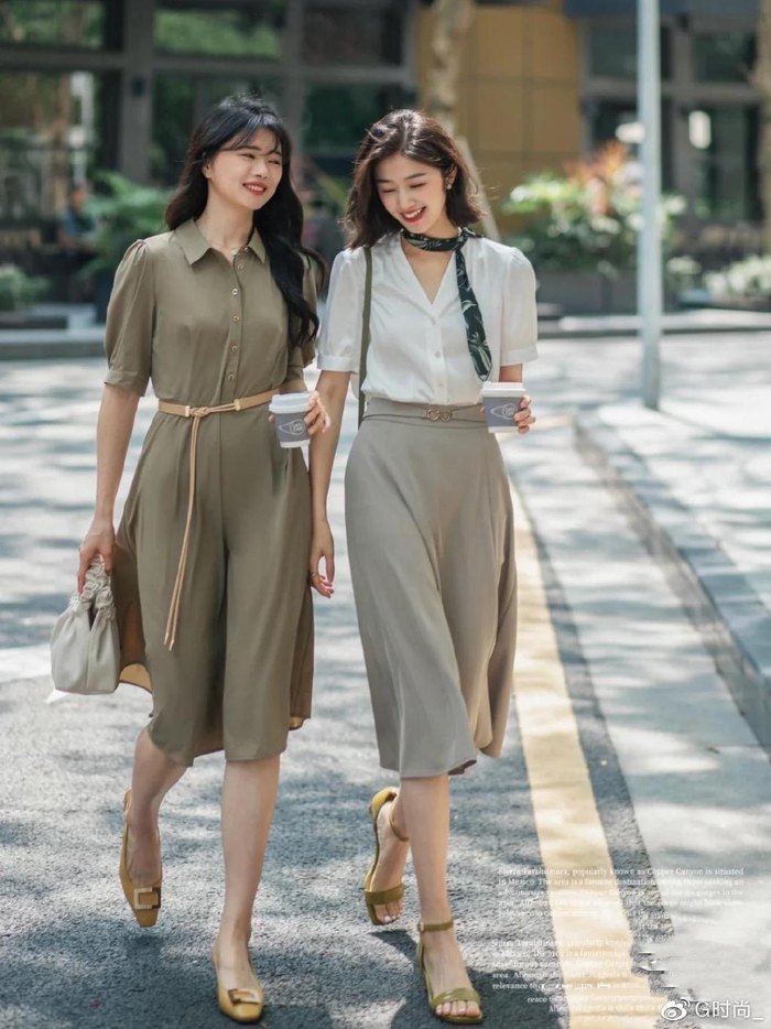不管是连衣裙还是半身裙,都建议搭配“高腰+过膝”的款式。高腰更自然的优化比例,过膝的长度更加自然柔和,透着知性之美,同时掩盖大腿和腰胯粗壮的线条,显得身材更加纤细。