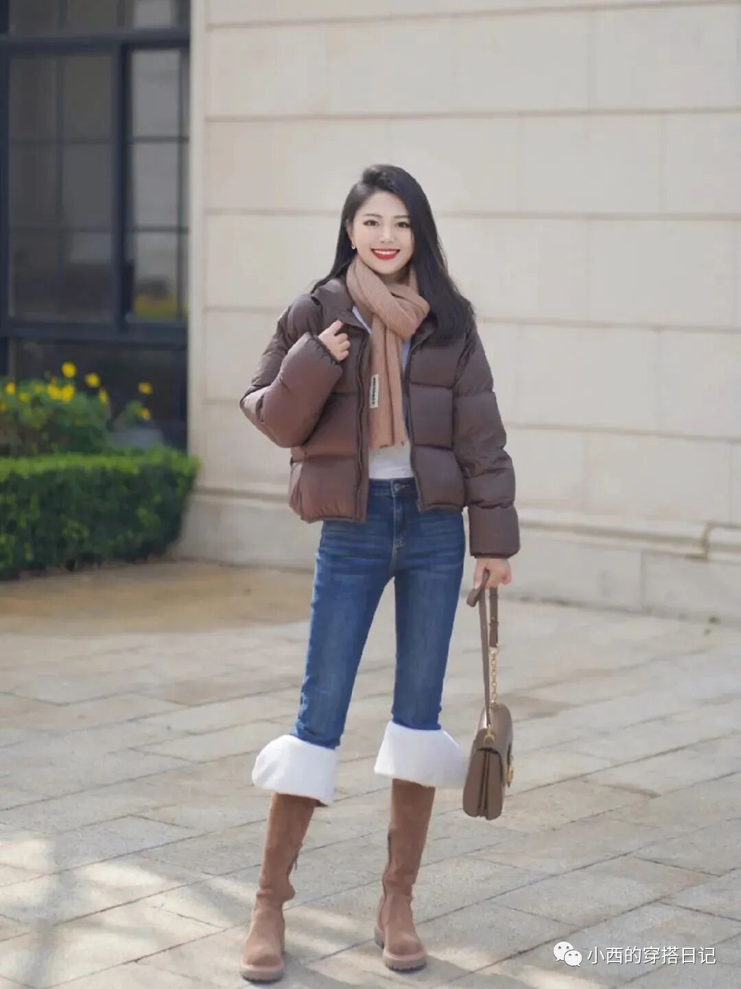 短款羽绒服自带的腰身感,帅气而时尚。搭配上紧身牛仔裤和长靴,再加上毛绒绒的元素,营造出温暖的触感。这样的穿搭不仅让人在寒冷中感到温暖,也难以抗拒靠近那由内而外散发的时尚气场。