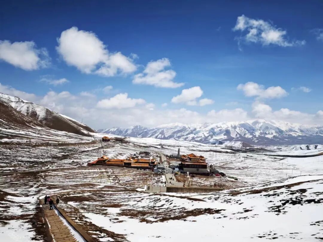 特别是6-7月,祁连山的草全绿了,门源的油菜花也会在7月盛开,风景就更加丰富多层次了。而我这次看到的祁连山脉都是雪原景象👇