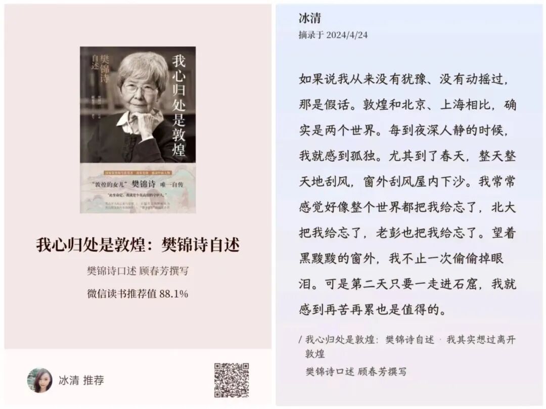 比如,被称为「敦煌的女儿」的樊锦诗有一本经口述整理的自传《我心归处是敦煌》。