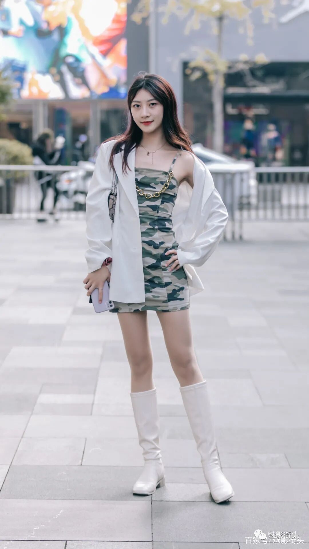 用西装搭配裙装也是冬日里常见的穿搭,一些年轻时髦的小姐姐还会采用混搭、或者反季节的搭配,来凸显自己的时尚气质。吊带裙就是不错的选择,可以用做内搭,外面配上西装外套,颜色上可以考虑外浅里深,这样会更有层次感,敞开衣襟利用内搭的吊带裙,还可以更好地展示身材曲线。