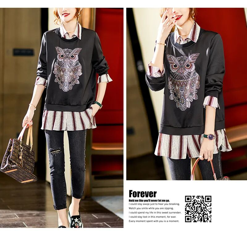 胶印猫头鹰图案,手工钉珠装饰增加精致感