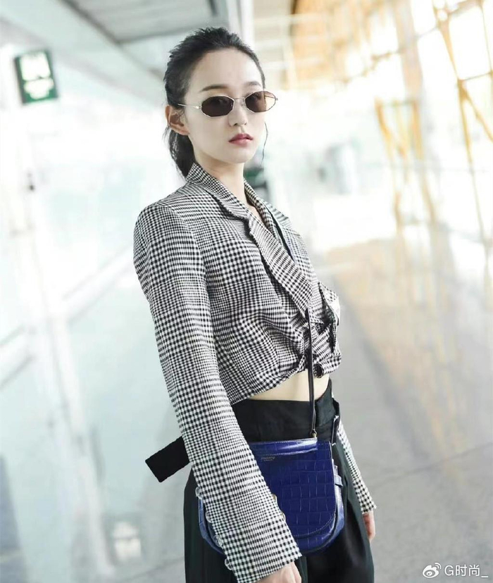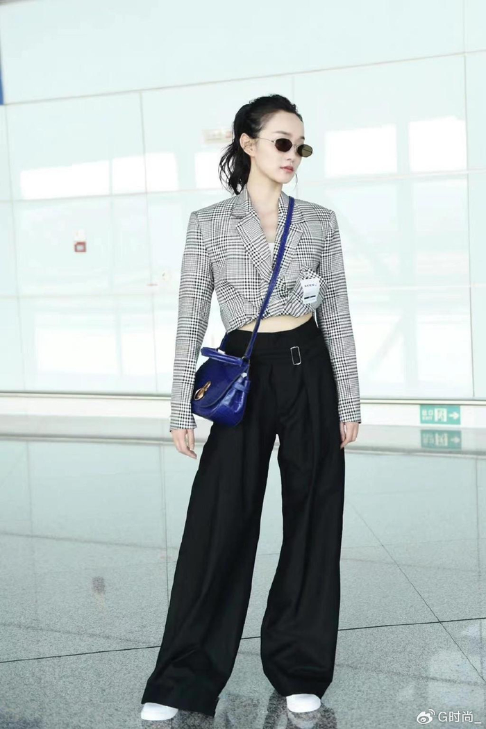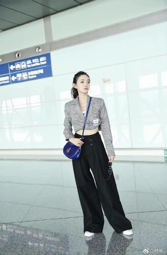 何泓姗的穿搭可真独特,穿西装故意选短款,露出小蛮腰挺吸引人的