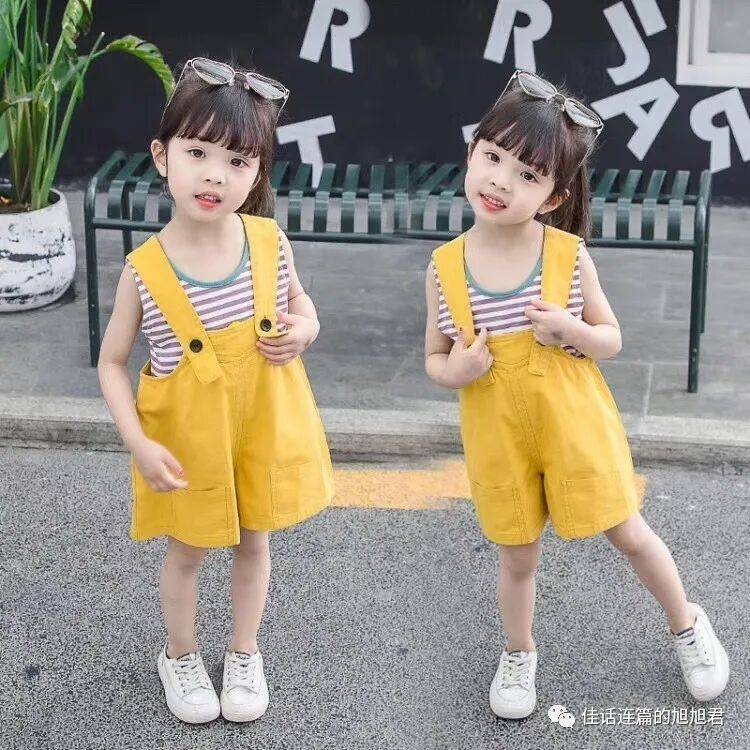 黄色是今年童装流行色系,可能很多麻麻都已经入手了黄色服饰。不过黄色还是蛮挑人的,搭配不好有点尬尬的。这一套中亮黄色背带裤配上横条纹打底背心,缓解了黄色的冲突感,视觉上更舒适亲人。