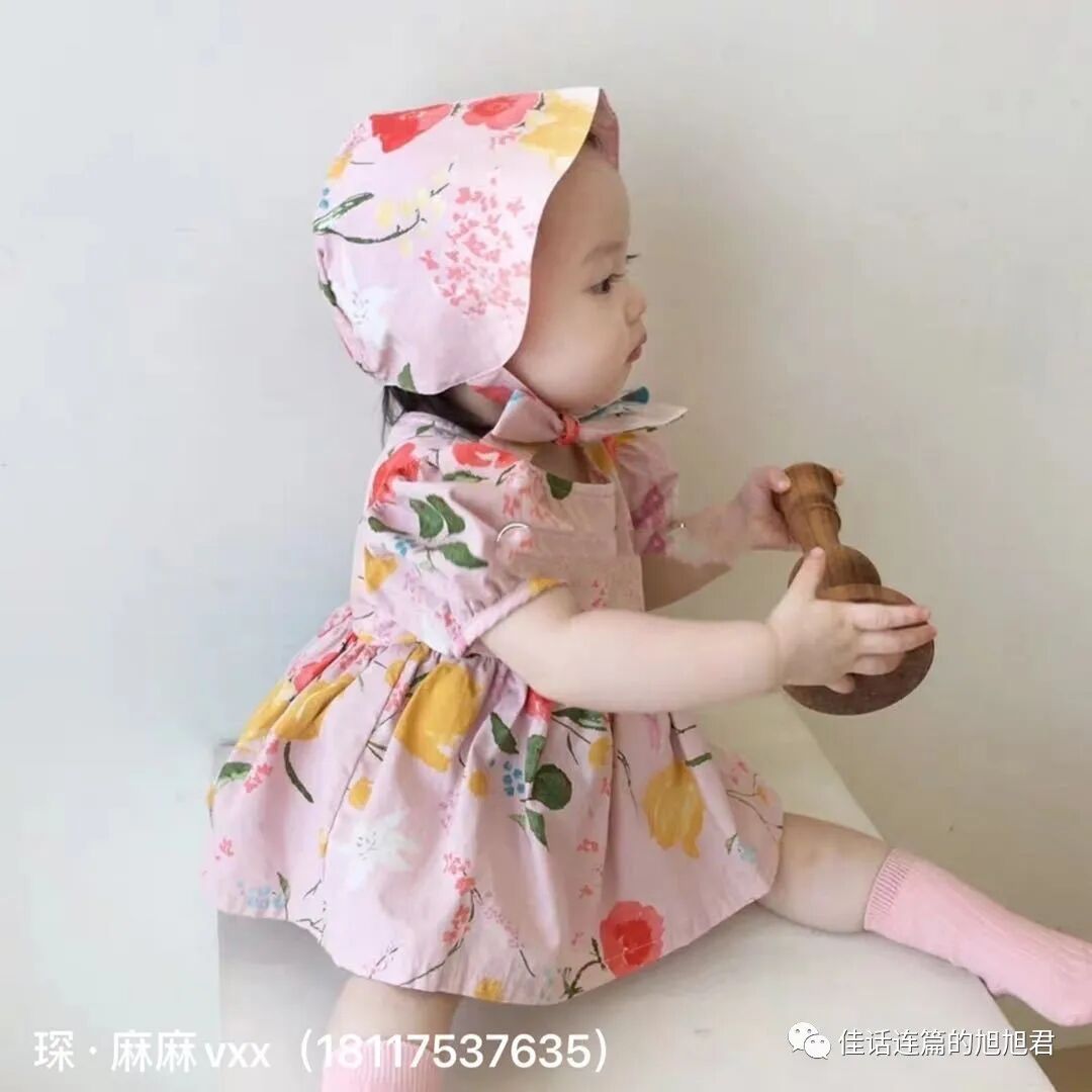 最后来一套mini宝宝套装吧,还不会走路的宝宝还是以哈衣穿着为主的,又舒适又方便,也算是一种套装类型啦。不过这套中加入了婴儿帽这个元素,法式浪漫显得又俏皮又有个性,很赞啦!