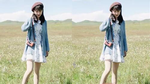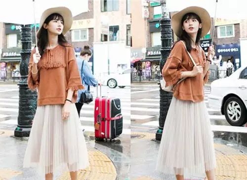 腰粗的妹子可以试试雪纺衫+半身裙的穿法,这样能够修饰腰身的线条,看起来显腰细,外搭一件针织开衫完全包裹了你的粗腰,时髦又显瘦。